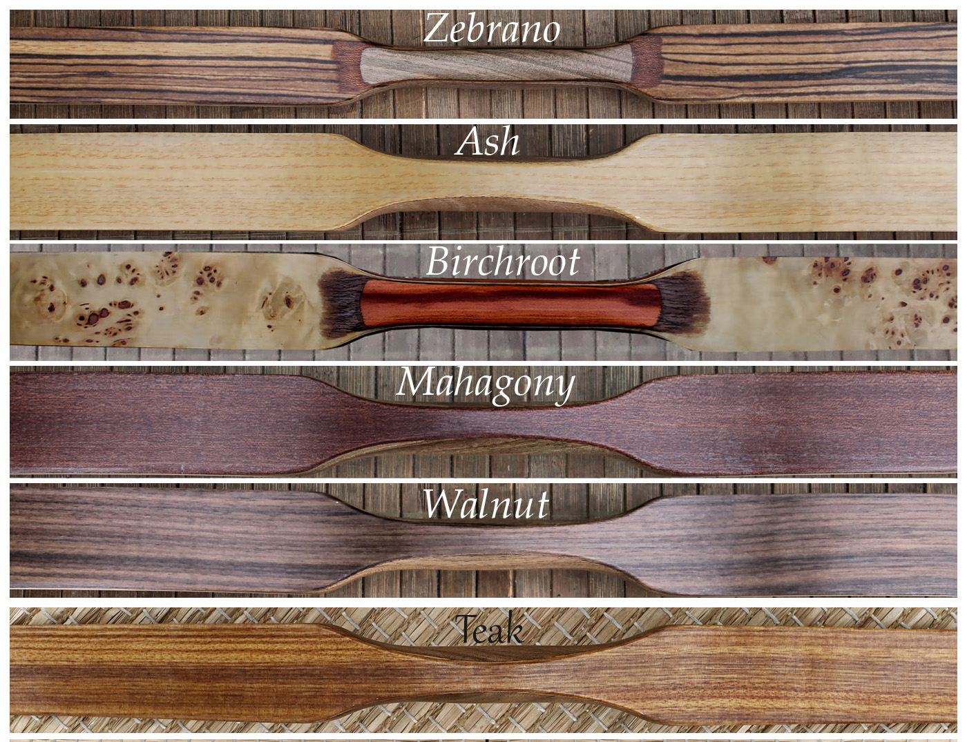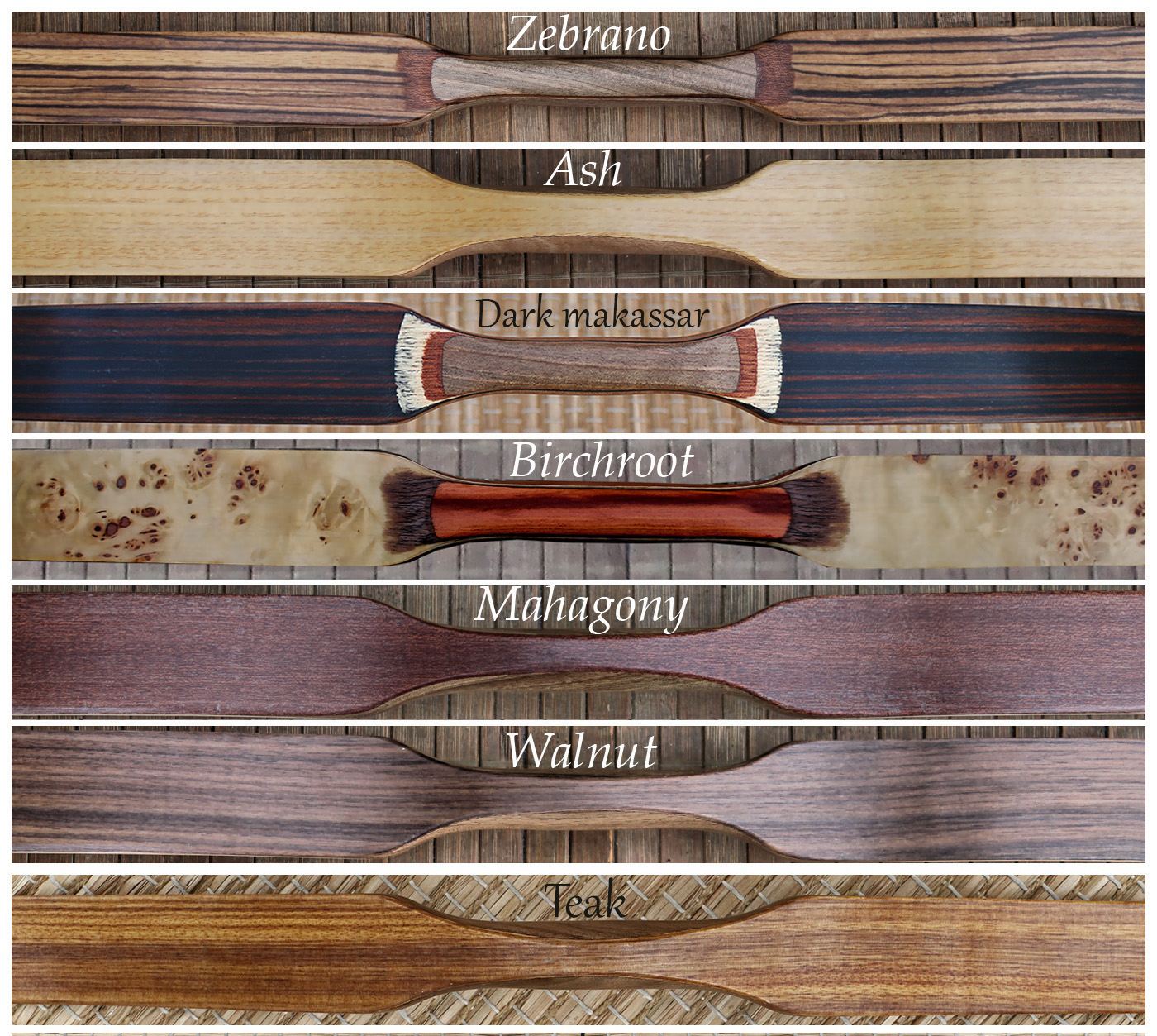 You deserve a unique bow. Choose the decor wood layer for each side of your bow.