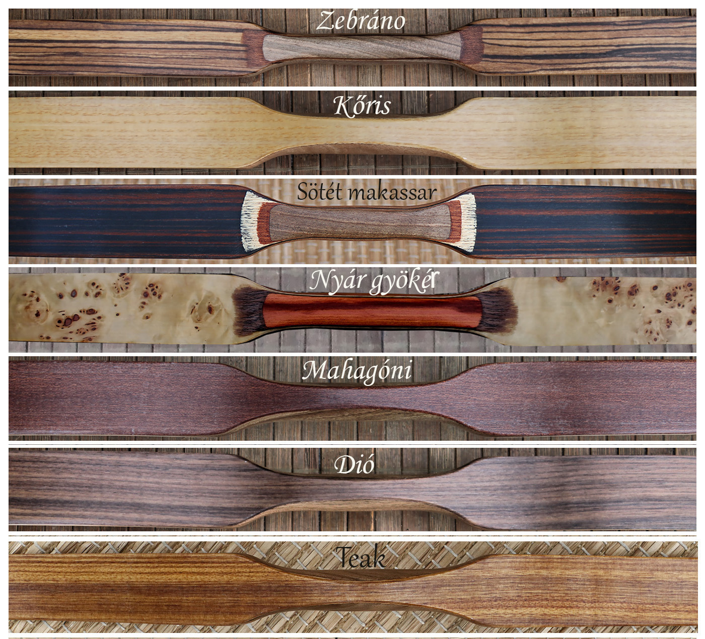 Tedd egyedivé íjad külső megjelenését. Válaszd ki az az íj külső farétegének fajtáját. Akár eltérő mintát is választhatsz az íj külső és belső oldalára.